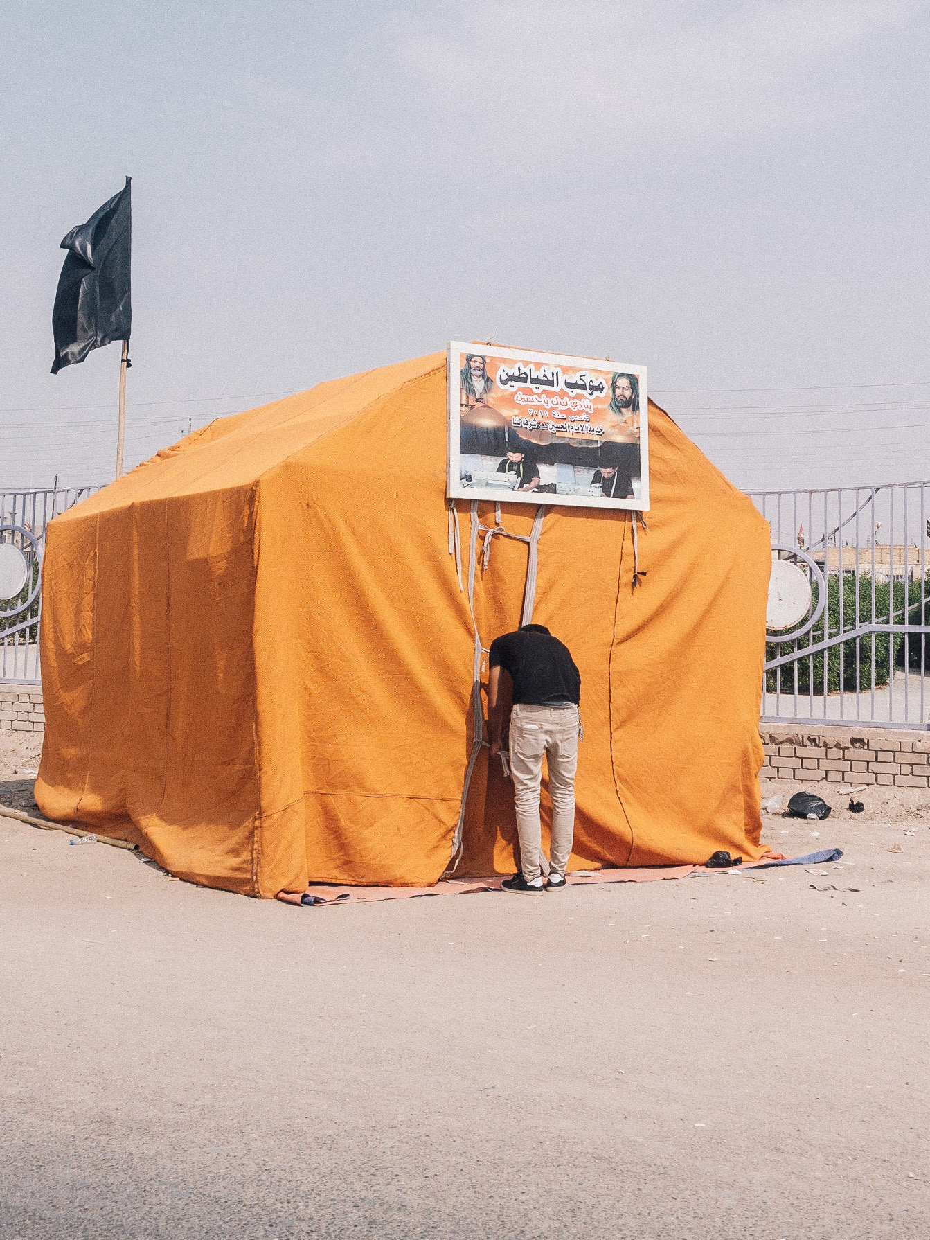 Back in October 2018, I was fortunate enough to observe this event during my travel from airport to the camp. Of course it was just a quick glimpse from the back seat as we weren’t allowed to leave the vehicle. But what I saw during the 2-hour drive was the show of faith and solidarity among Shia Muslims. You see young people, you see old people on wheelchair, you even see a donkey carriage. Villagers who live along the main roads to Kabala set up tents to offer food and shelter to the pilgrims. It was especially a hot October day, so you could imagine how tiring it must be to walk such a long distance under intense Basra heat.