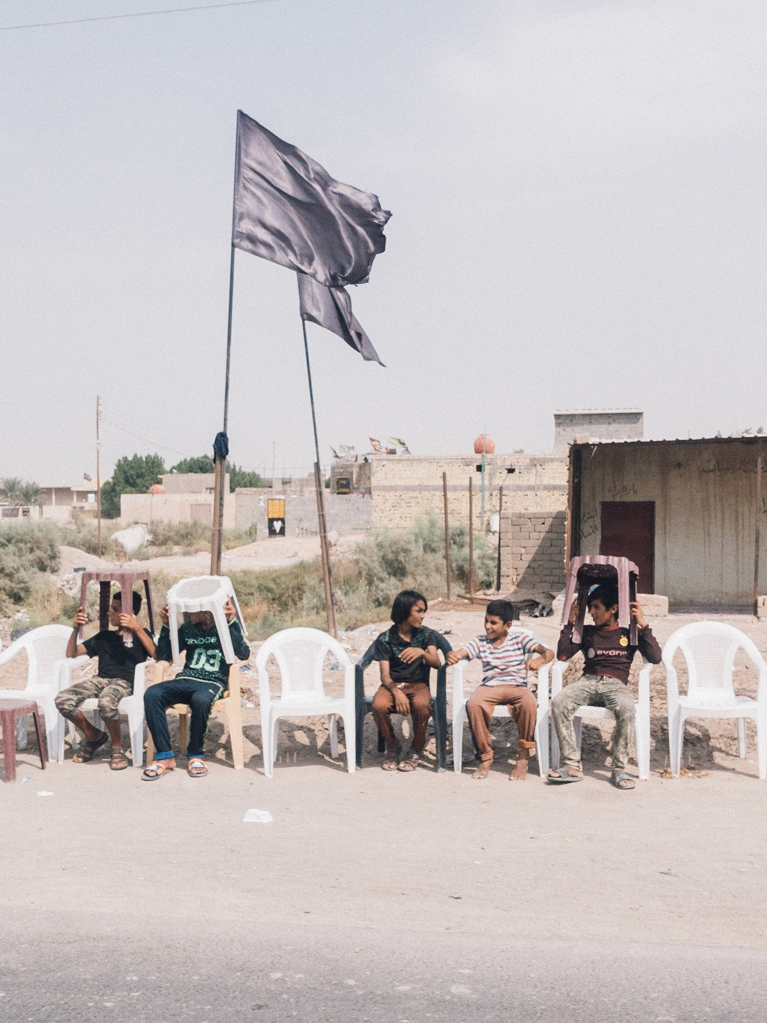 Chairs used by the boys as sun shade