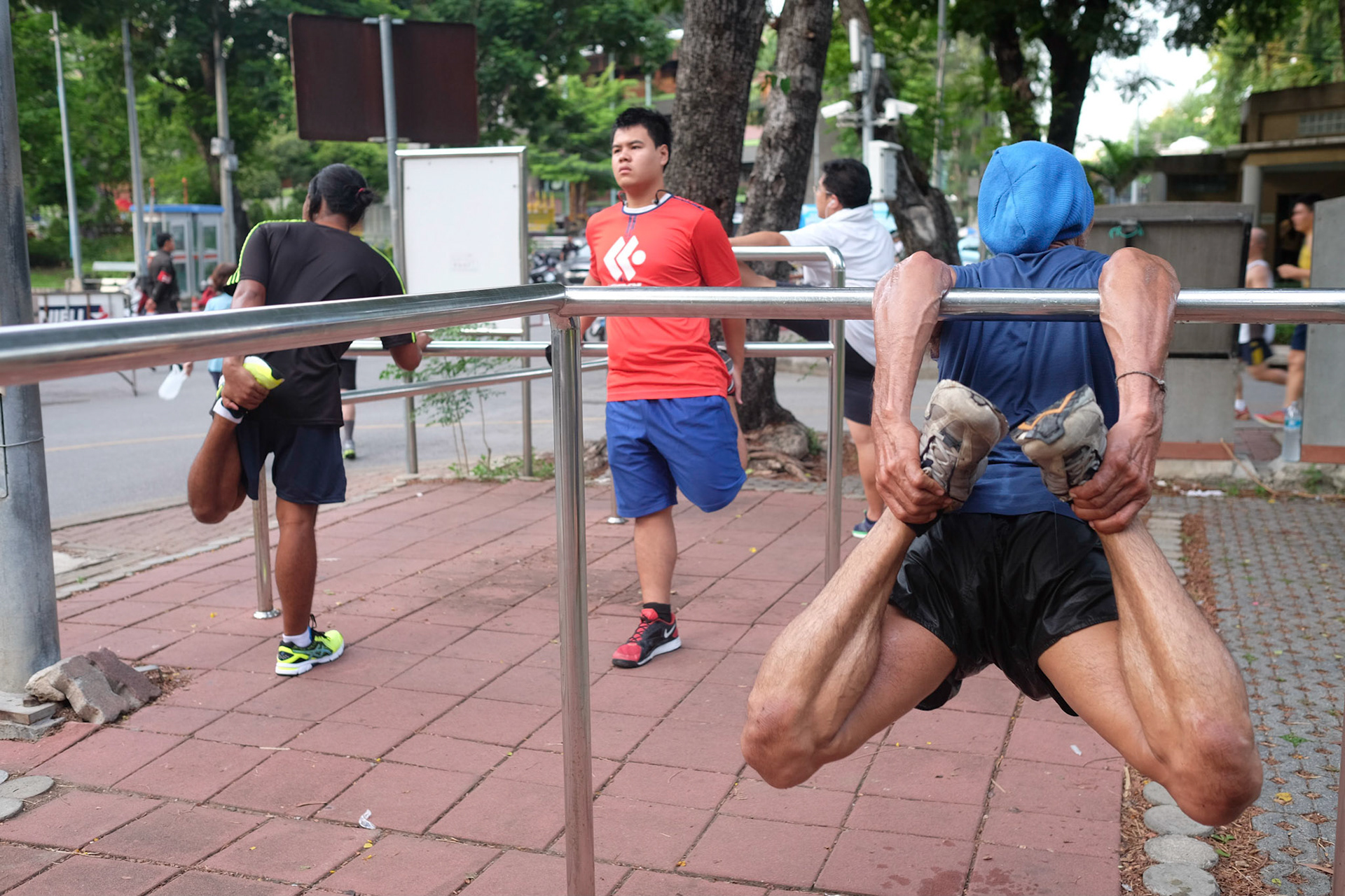 I asked if he had done any other physical training to see why his body is so flexible. "I only run", he said. "I started running when I turned 50. Before that I didn't do much exercise. Some of the guys here are already well into their 70's - I think there is one grandpa who is 90 - but still comes here almost everyday to run."