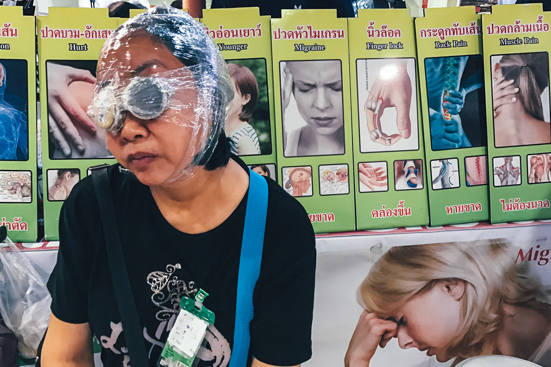 ไปเที่ยวห้างแล้วเจอฝรั่งมาเปิดบูทขายแผ่นแปะ พร้อมอ้างว่ามีสรรพคุณแก้สารพัดโรค มีคนไทย (หรือหน้าม้า หรือเปล่า?) มานั่งอยู่เต็มร้าน...บางคนก็เอาแผ่นกลมๆนี้มาแปะหัวเข่า บางคนก็แปะหลัง แปะมือ พูดง่ายๆคือแก้ได้หมด เป็นซีนที่ขำๆ สำหรับคนทั่วไปที่เดินผ่านไปมา