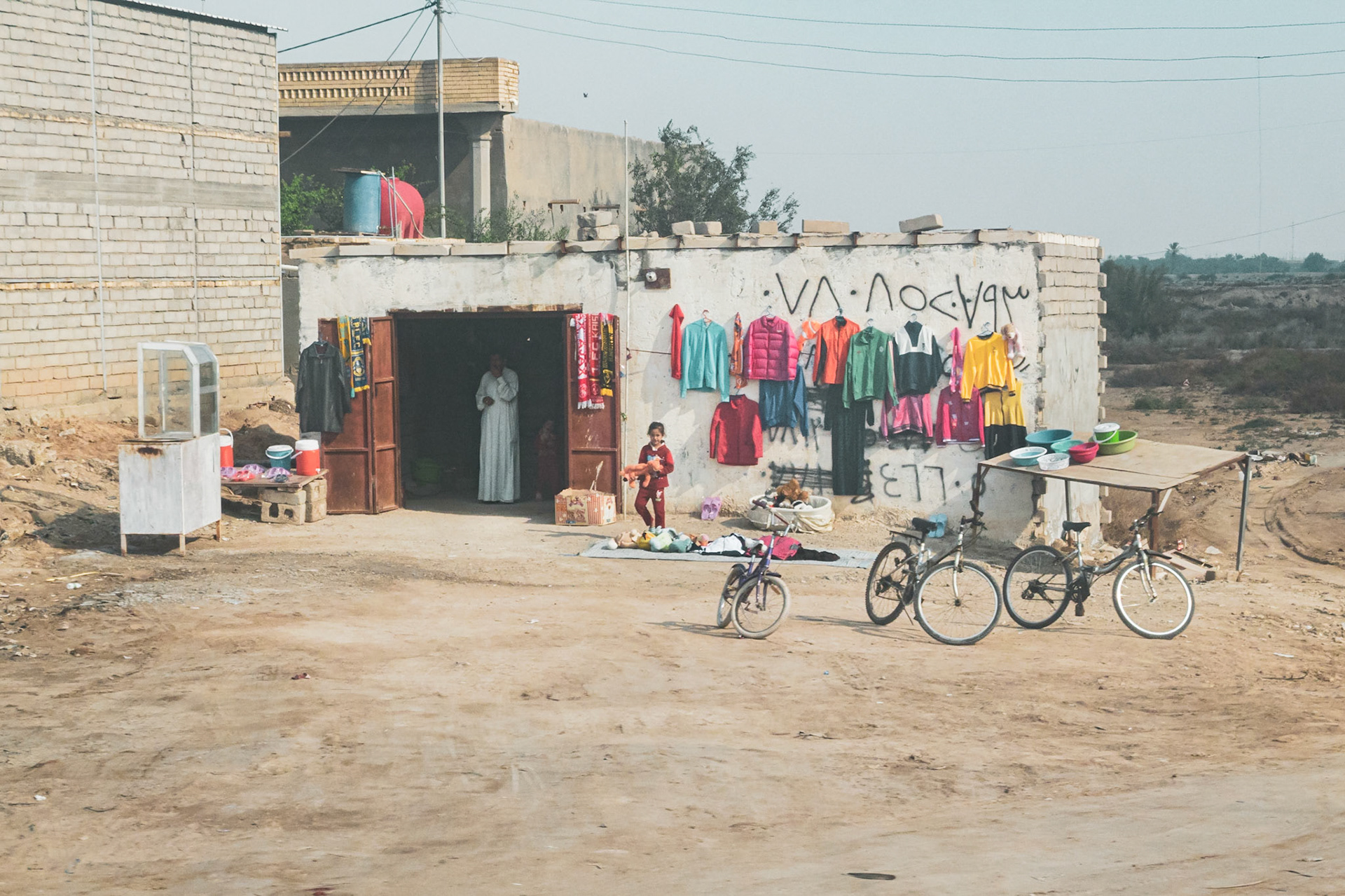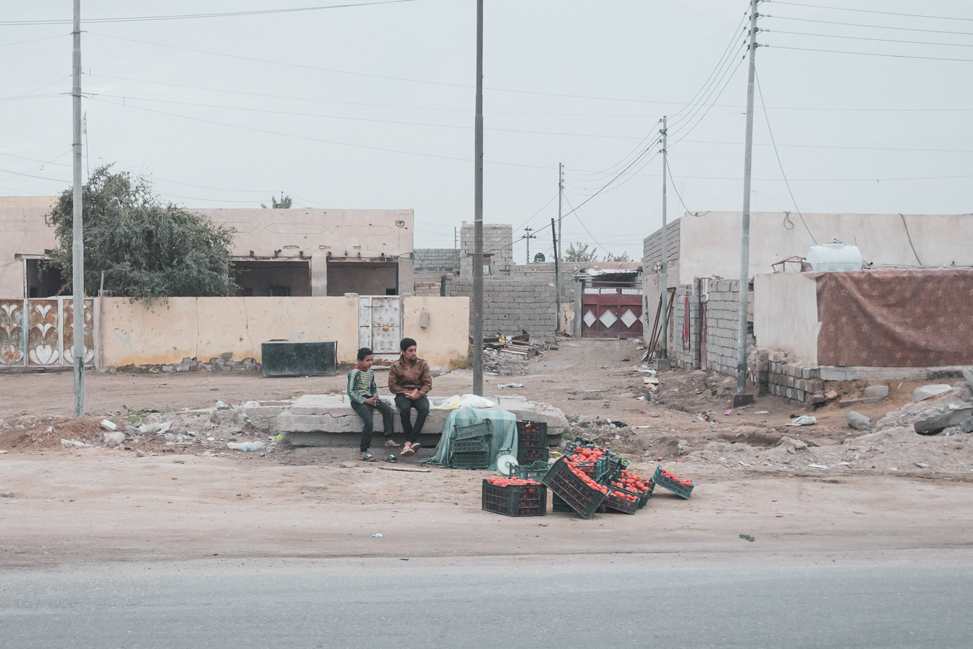 Tiny shacks dotting the roadside