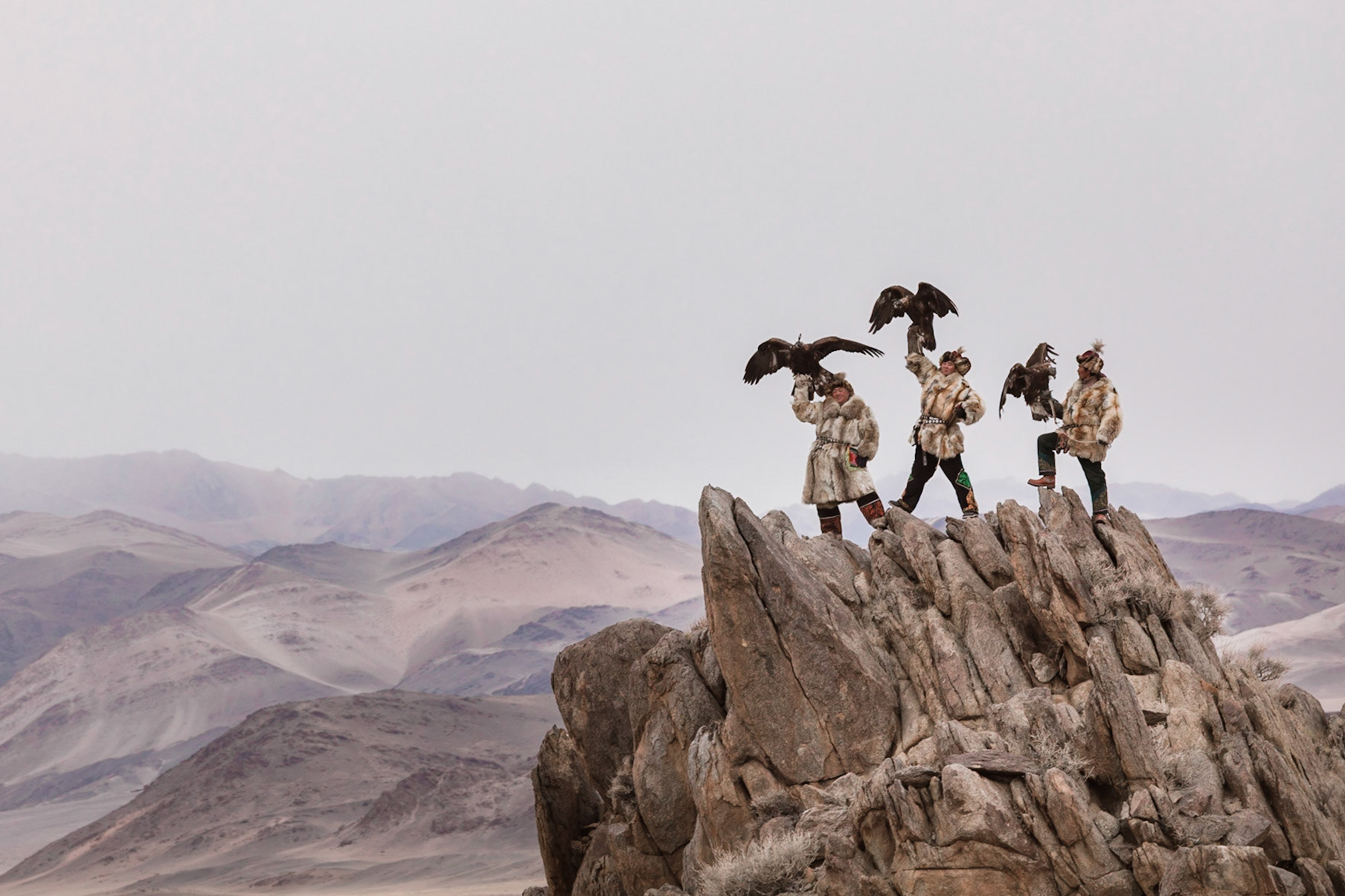 Our local fixer introduced us to the family of an eagle hunter, and there we met a young girl named Zamanbol who aspires to be the next eagle huntress. She hopes to follow in the footsteps of the famous Aisholpan, the first female hunter to compete in a male-dominated eagle festival in Ölgii. Maybe she was just shy in the presence of strangers, but she had a quiet demeanor. I could see a hint of sadness in her eyes. It made me wonder whether this was where she really wanted to be. On our last day with the eagle hunters, we had a chance to observe how a golden eagle was trained. That was the first time I saw Zamanbol’s genuine smile. I could finally see that she loved to be out there with her golden eagle.